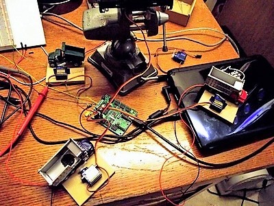 Each item has a small servo motor attached to it. Programming was done with Lynxmotion sequence software.