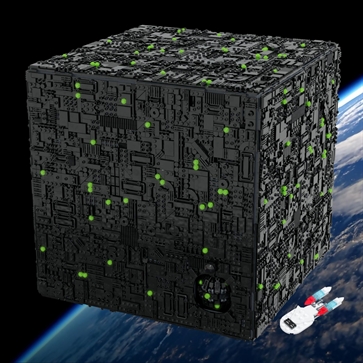- Enterprise-Borg phaser battle...models being prepped now with lasers and sound effects.