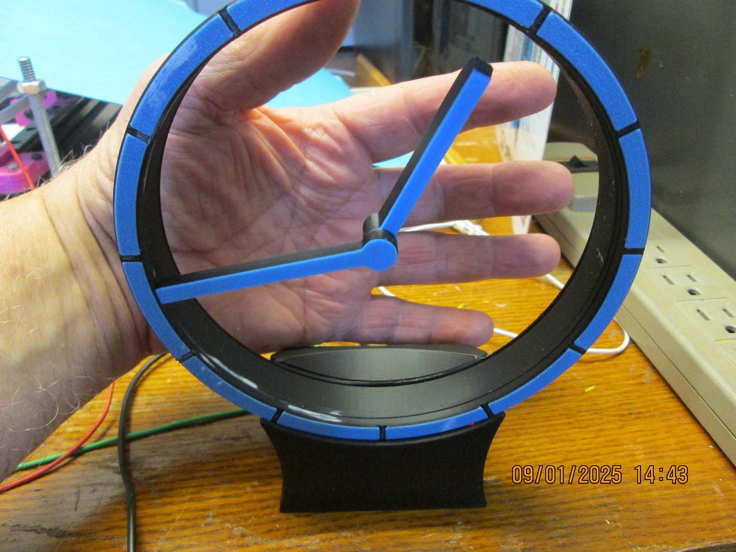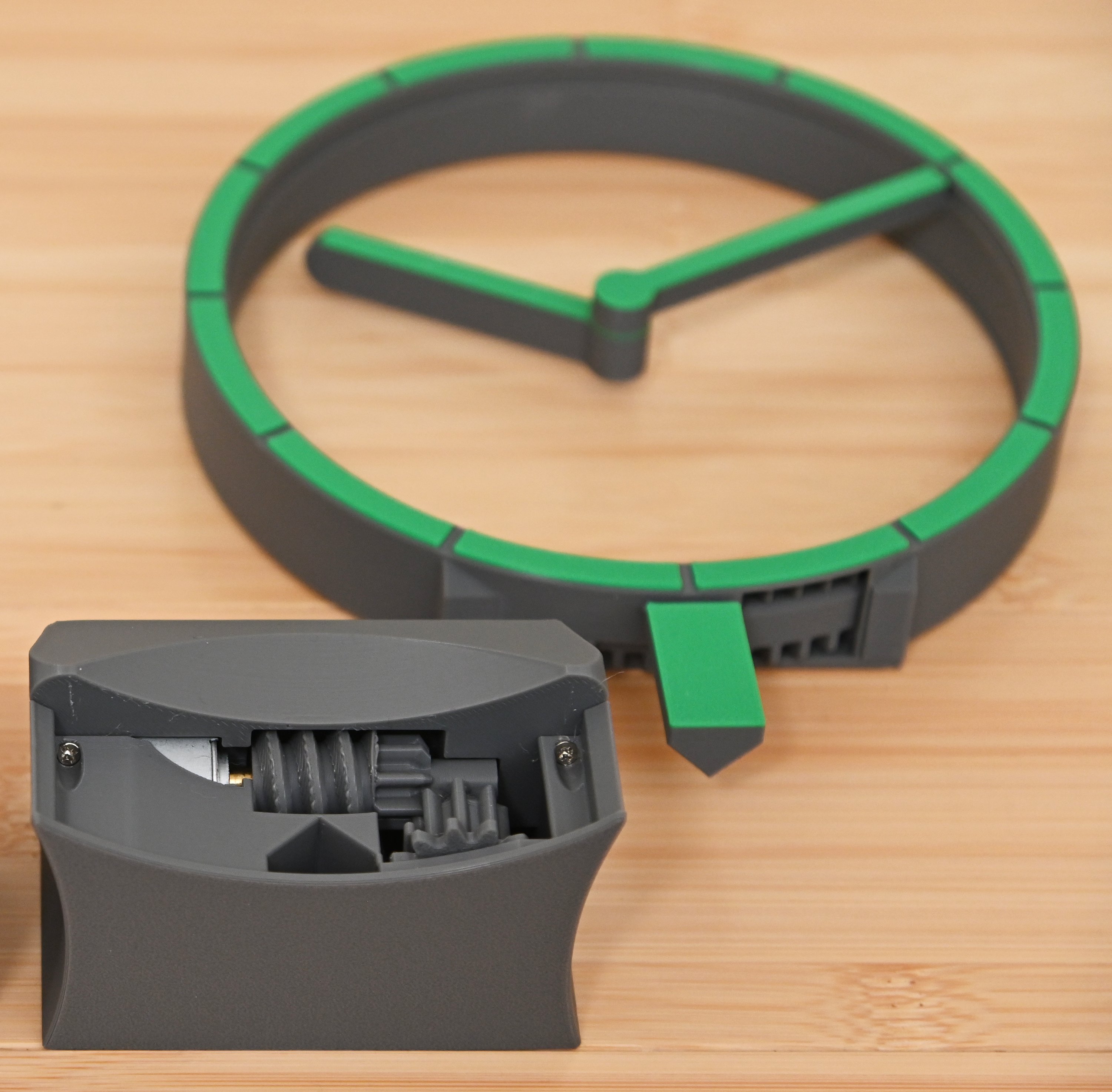 This was the first time I printed in two colours (for the same part). The two gears inside didn't print well and were very rough on the surface, so I reprinted with finer resolution, and in different orientation to get a nice smooth gear surface.