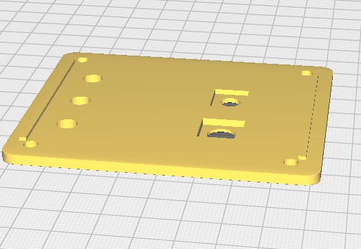 This is the cover I made for the box, shown on build plate. This is bottom view showing cutouts for switch and pot.