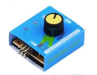 I took my small, inexpensive, servo tester, shown on left, took it apart and used only the integrated circuit on the board to make an easier to use box, shown on right.