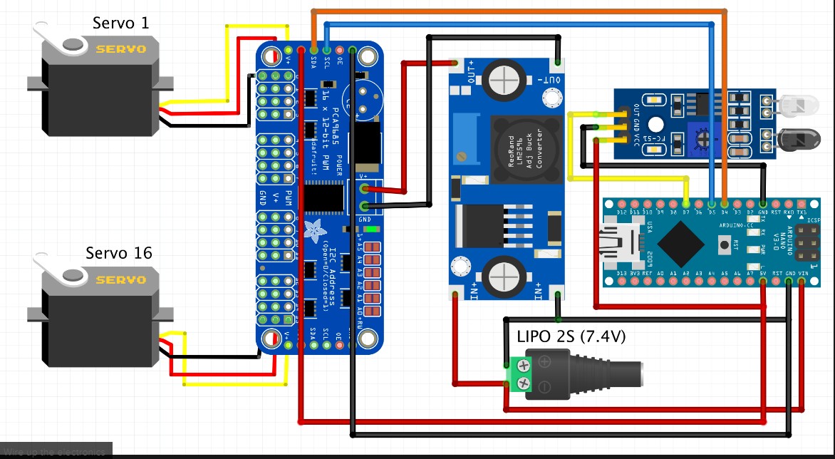 - The swivel on the bottom of the servo mount that allows the servo to swivel was too short and didn't contact the hole it was supposed to swivel in. I modified the part with 5mm extension.