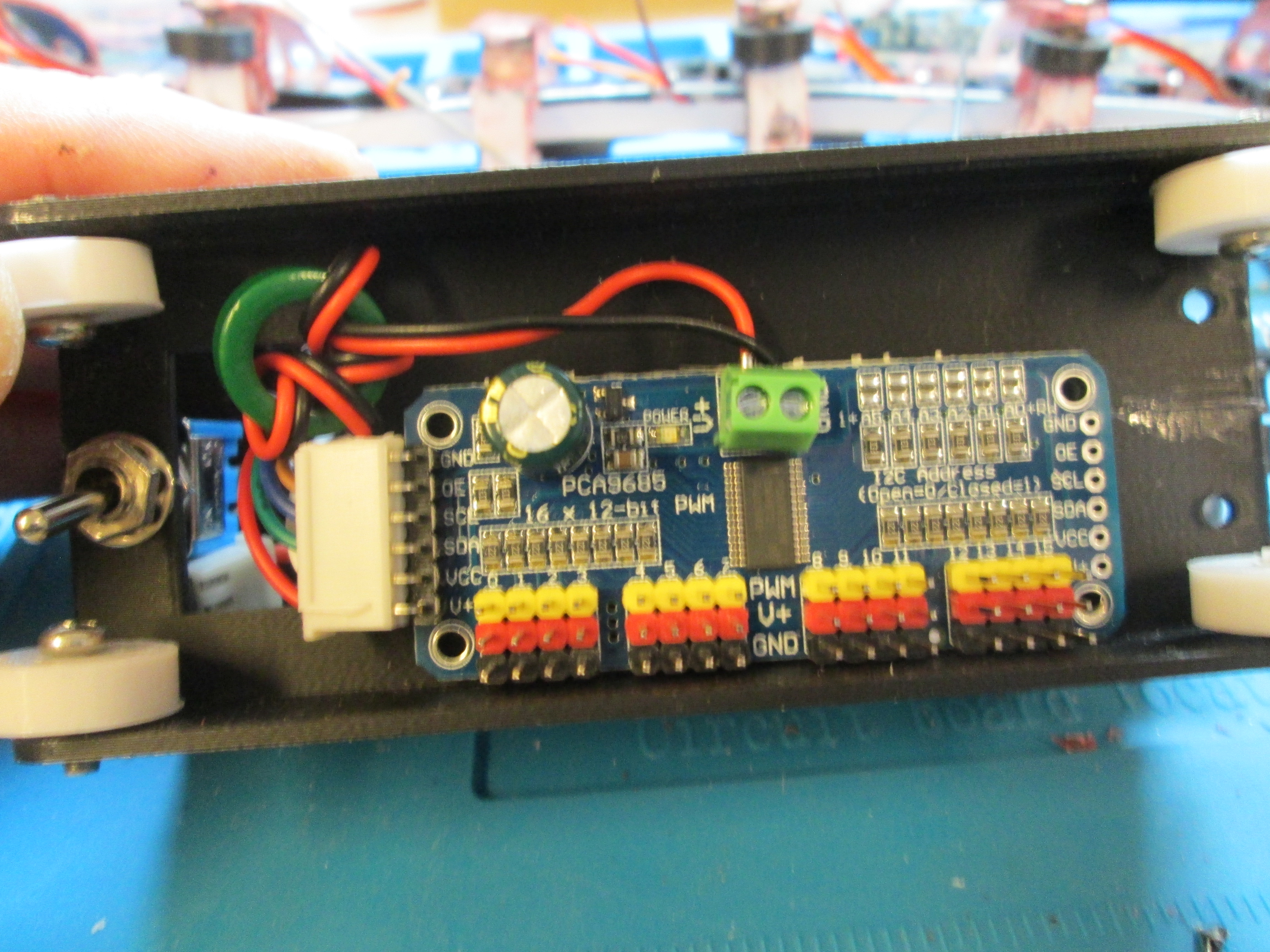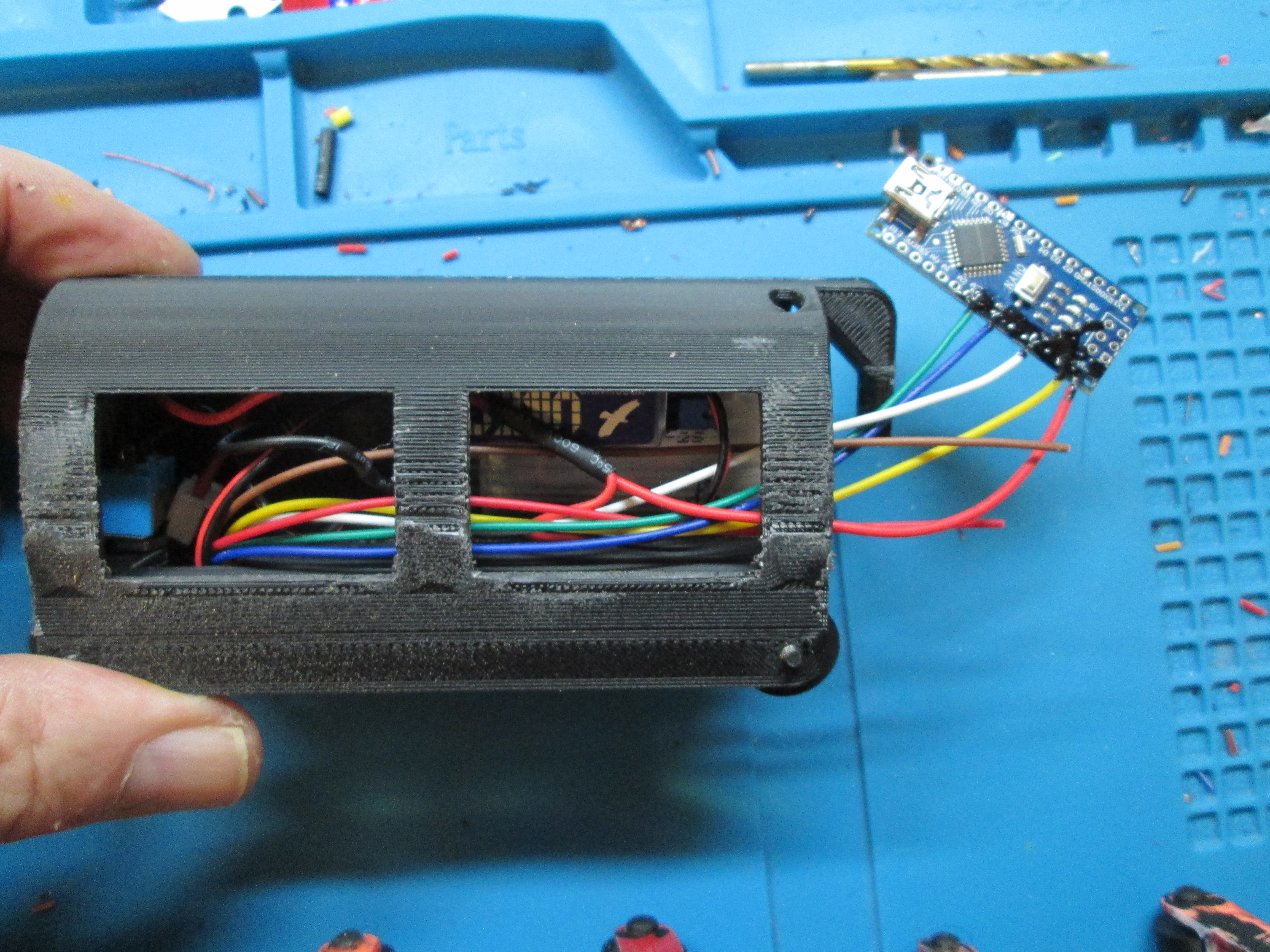 - The caboose is very tight for room. I had to cut some of the supports off the top so I could get access to inside. I use a big battery because there are 16 servos - lots of current required.