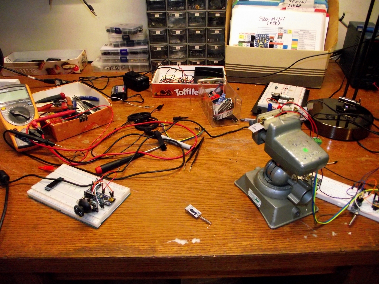 My recent mission with robots and electronics was to make them out of "ordinary" items, such as this TV remote control. I like the idea of telling someone to fetch the remote, and when they do, I make it scurry away, like a rat.