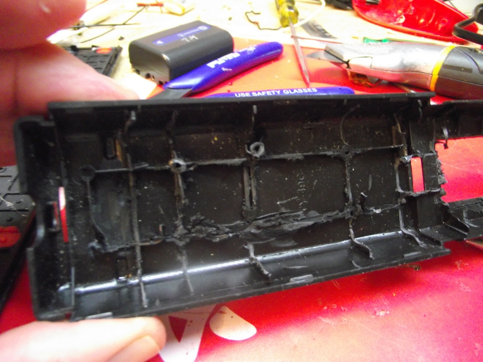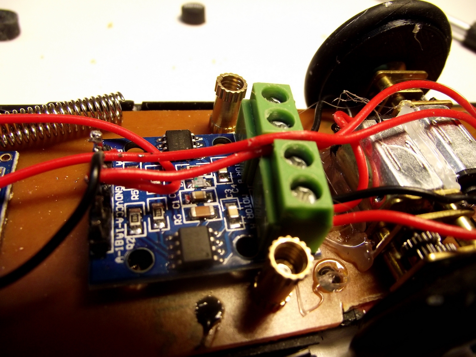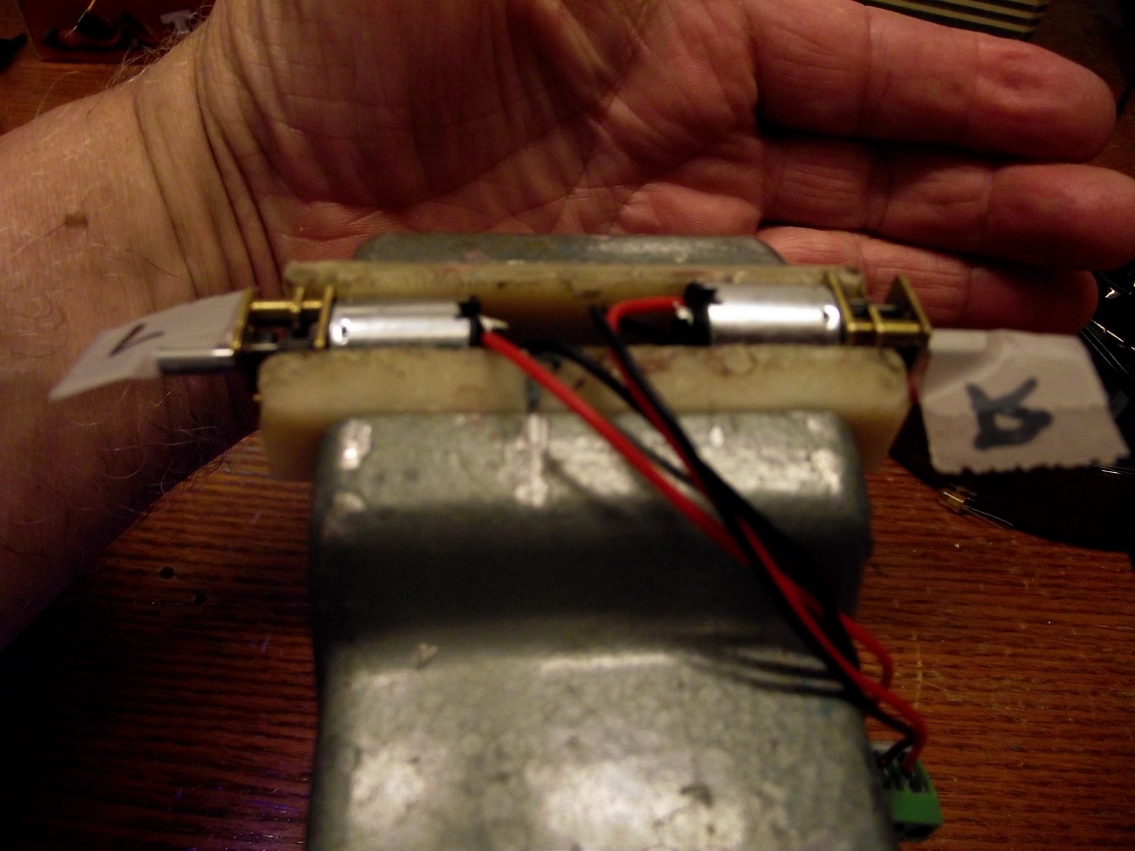 This job was somewhat challenging because of the "thinness" of the remote control. Also since the width was fixed and I wanted to wheels to not stick out, I had to offset the wheels because of the gear motors inside. Looks weird, but it works.