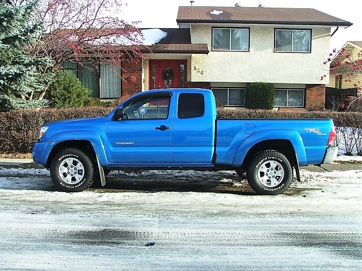 Ford dealers couldn't sell me a truck so I bought one from Toyota. What a beautiful blue color, nicest color of any vehicle in that model year. Second day I owned it I went up to Fort MacMurray to work in a mud bog! 245 HP in a V6, mid-size truck with all bells and whistles and 4x4 that pulled my trailer with car on it better than the F150. With 4 doors, the ideal truck but didn’t start as well as the F150. My photo. Update 2016: Perforation corrosion on the frame of this truck and truck was recalled by Toyota who did a complete frame replacement on warranty. Cost me $1000 to replace the axle tubes and rear housing and since I didn’t want to spend any more on it, I traded it off on the 2017 Ford Escape, below. I put a red frame to denote a "favourite" because I loved this truck, but it let me down. Purchased from Stampede Toyota, Calgary.