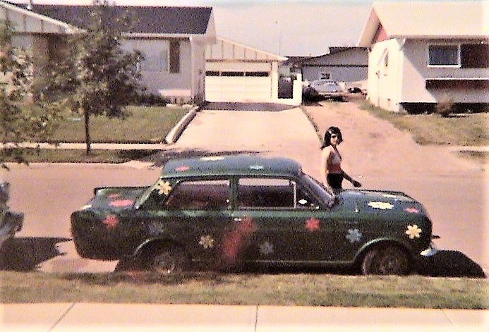 A commuter car. Originally grey, I painted it green metal-flake with a bunch of big daisies all over it. With 2 kids and a dog in the car, it looked pretty cute. Steering went on it so when I sold it, I was sure to tell the buyer it HAD to be fixed or he would die. My photo.