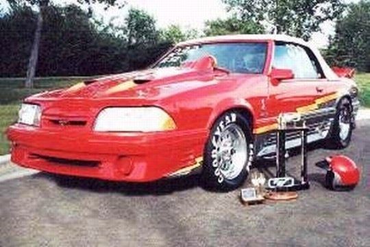 This was my “winter” car when I only had the convertible. I pulled the 4 banger 4-speed and installed a C-4 with 351 CID (modified) engine. I sold the car, bought it back, then sold the engine to the guy who bought the car the first time! So, having just the shell, I installed a Boss 302 race engine that I paid $7000 for and quickly blew up on the race track in Edmonton. I then got smarter but poorer by investing in a 351Windsor Cup (NASCAR) engine which I had good fun with. Ran 10.0 sec@135 mph in the quarter mile on single puff of nitrous. Sold car for $14000 in spring of 2006 to president of the Calgary Drag Racing Association who was getting into the 9’s with the engine in his lighter Mustang. Red in color. My photo. More photos: www.raiderracing.com