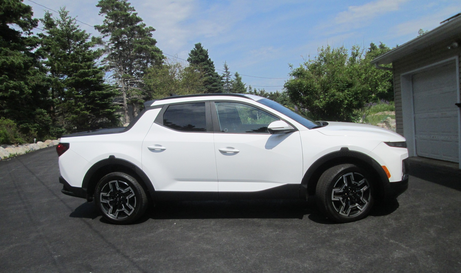 Is it a car? Is it a truck? A "cruck"? If you look at it, it appears to be an SUV with the back cut out of it. I traded in the Escape for this beautiful TRUCK, the first white vehicle I have ever owned. All the bells and whistles as well in this vehicle, bought it off the lot from Hyundai Halifax. Rides like a Caddy, so quiet I have to look at the tach to see if it's running! Tons of power with it's turbo enhanced engine. Starts without a key...using my fingerprint. Max loves it.